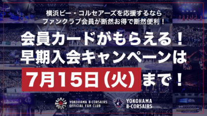 【ファンクラブのご案内】横浜ビー・コルセアーズ ファンクラブ早期入会締め切り間近!